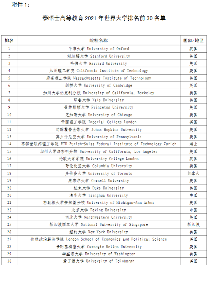 (1)泰晤士高等教育2021年世界大学排名前30名高校的研究生、泰晤士高等教育2021年世界大学排名前10名国内高校的研究生。