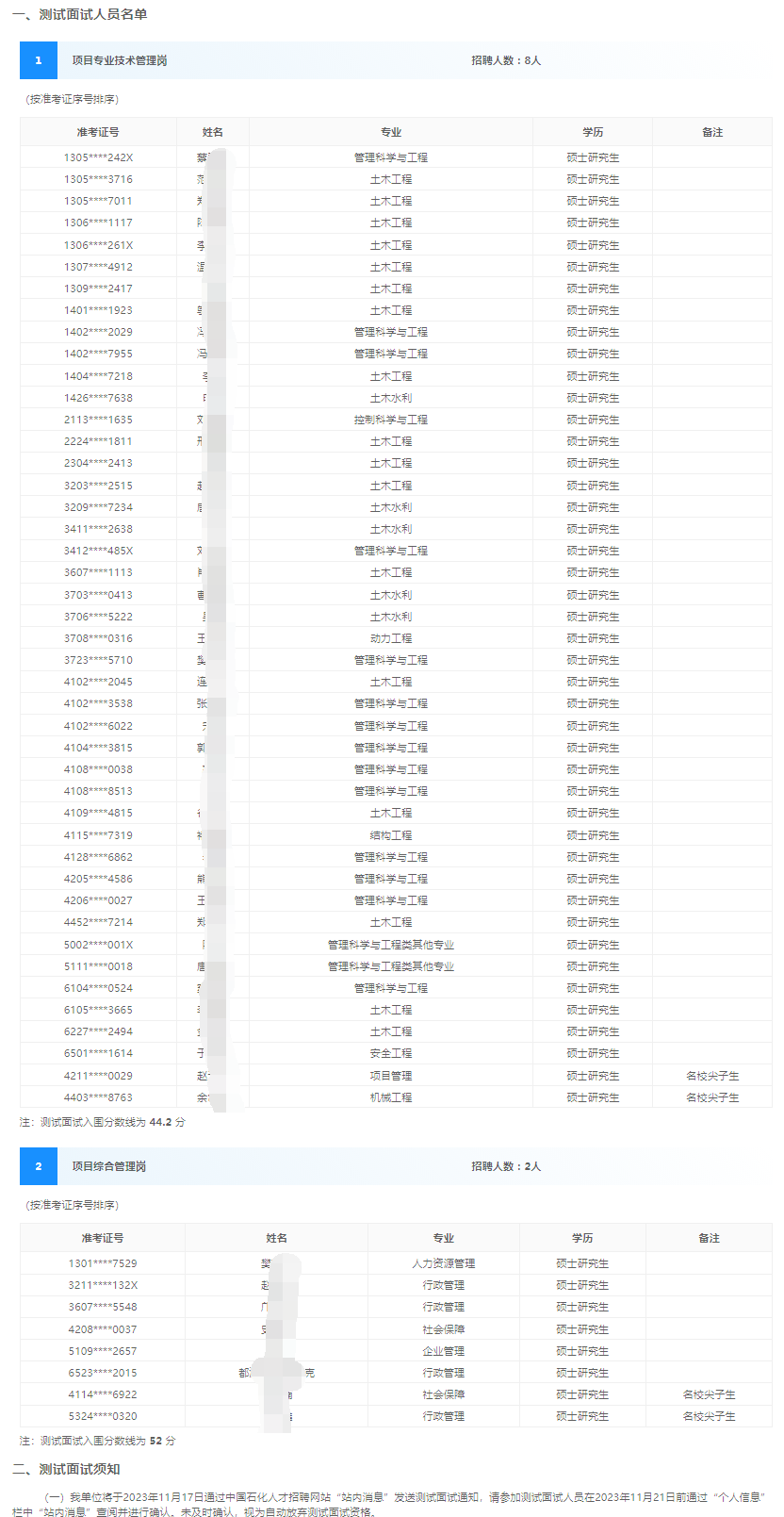 (一)我单位将于2023年11月17日通过中国石化人才招聘网站“站内消息”发送测试面试通知,请参加测试面试人员在2023年11月21日前通过“个人信息”栏中“站内消息”查阅并进行确认。未及时确认,视为自动放弃测试面试资格。