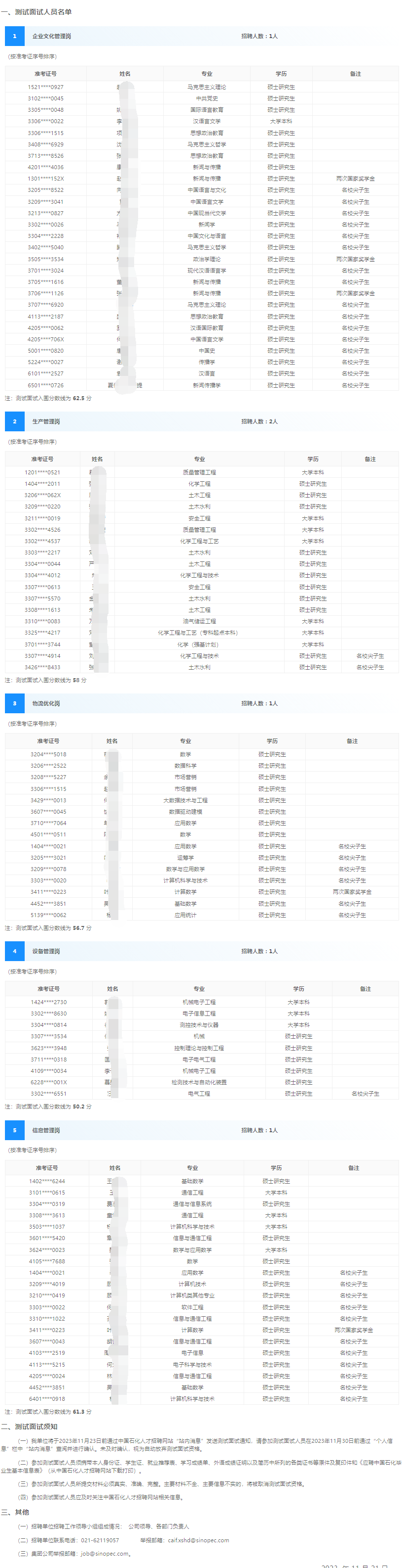 (一)我单位将于2023年11月23日前通过中国石化人才招聘网站“站内消息”发送测试面试通知,请参加测试面试人员在2023年11月30日前通过“个人信息”栏中“站内消息”查阅并进行确认。未及时确认,视为自动放弃测试面试资格。