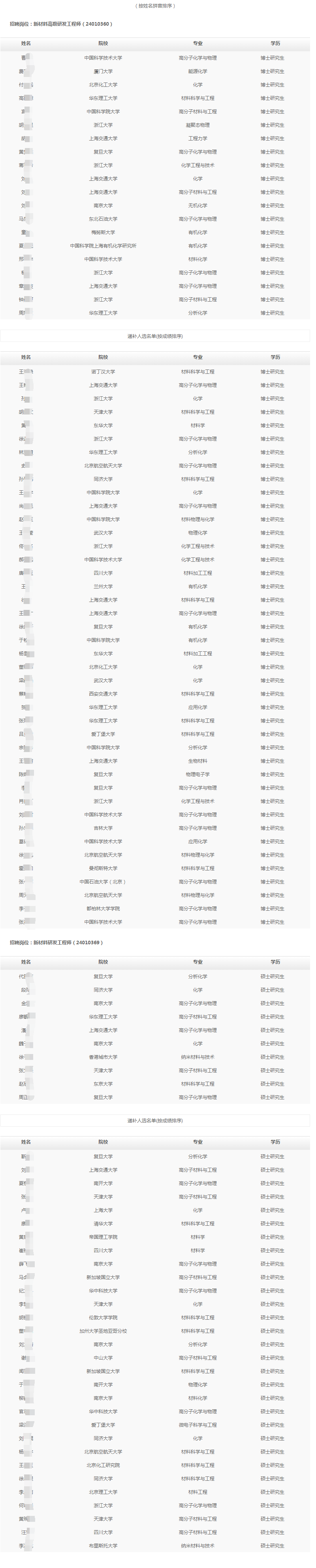 上海)新材料研究院有限公司2023年秋季高校毕业生招聘拟录用和递补人选公示