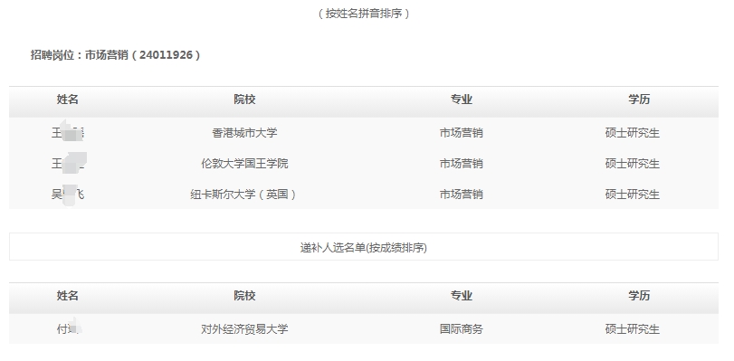 为增加高校毕业生招聘工作的透明度和公信力,进一步扩大民主、加强监督,根据中国石油高校毕业生招聘工作有关要求,经资格审查、专业考试、面试等程序,我单位提出以下拟录用人选,现将名单予以公示。