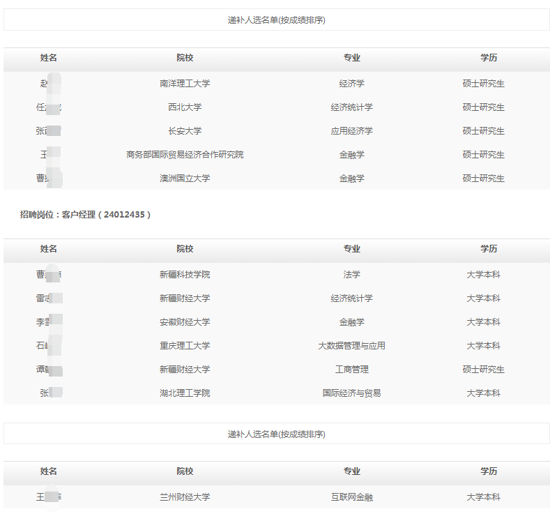 昆仑银行股份有限公司2023年秋季高校毕业生招聘拟录用和递补人选公示