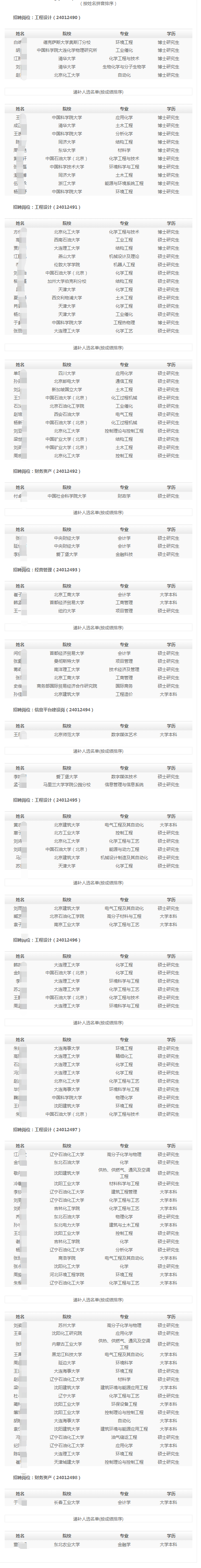 为增加高校毕业生招聘工作的透明度和公信力,进一步扩大民主、加强监督,根据中国石油高校毕业生招聘工作有关要求,经资格审查、专业考试、面试等程序,我单位提出以下拟录用人选,现将名单予以公示。