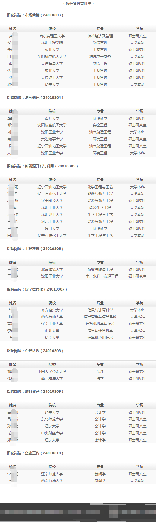 为增加高校毕业生招聘工作的透明度和公信力,进一步扩大民主、加强监督,根据中国石油高校毕业生招聘工作有关要求,经资格审查、专业考试、面试等程序,我单位提出以下拟录用人选,现将名单予以公示。