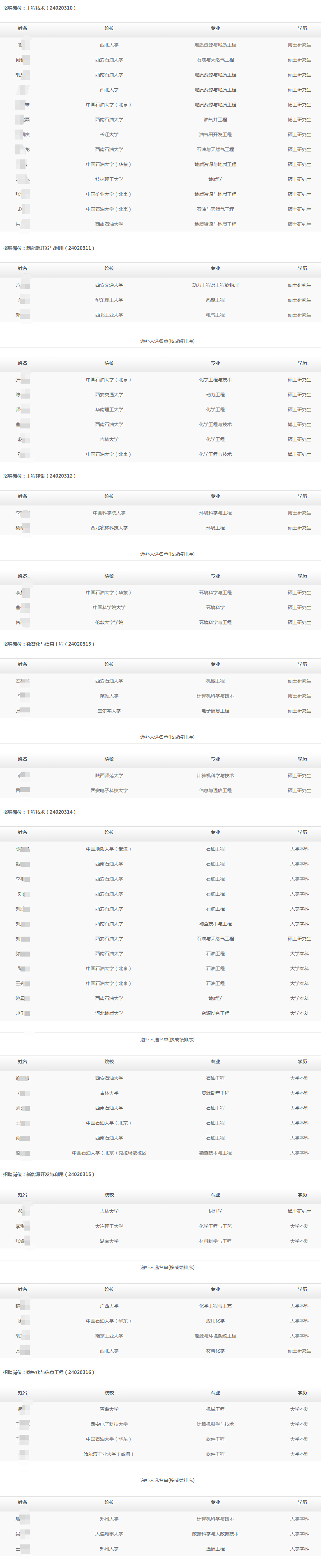 为增加高校毕业生招聘工作的透明度和公信力,进一步扩大民主、加强监督,根据中国石油高校毕业生招聘工作有关要求,经资格审查、专业考试、面试等程序,我单位提出以下拟录用人选,现将名单予以公示。