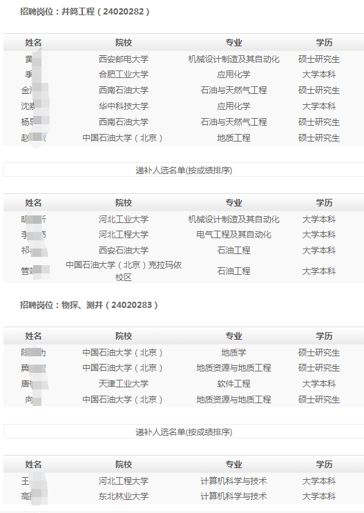 首页 > 中国石油 > 招聘公告 > 2024华北油田分公司春季高校毕业生招聘拟录用和递补人选公示