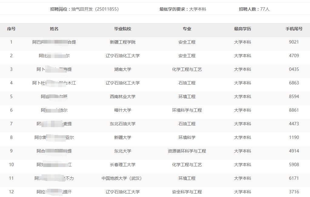 2024年新疆油田分公司秋季高校毕业生招聘入围通用能力考试名单