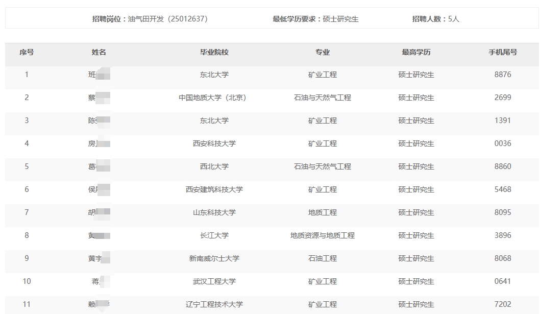 2024年南方石油勘探开发秋季高校毕业生招聘入围通用能力考试名单