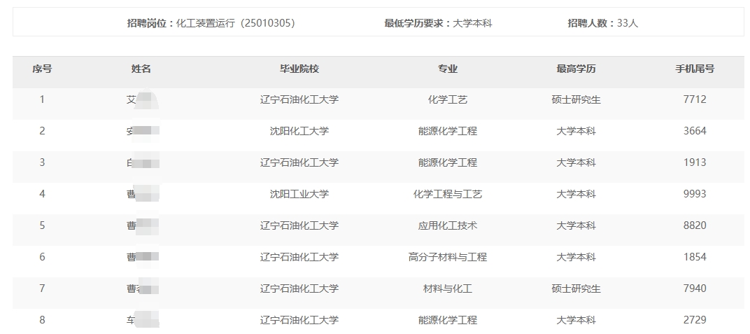 2024年辽阳石化分公司秋季高校毕业生招聘入围通用能力考试名单