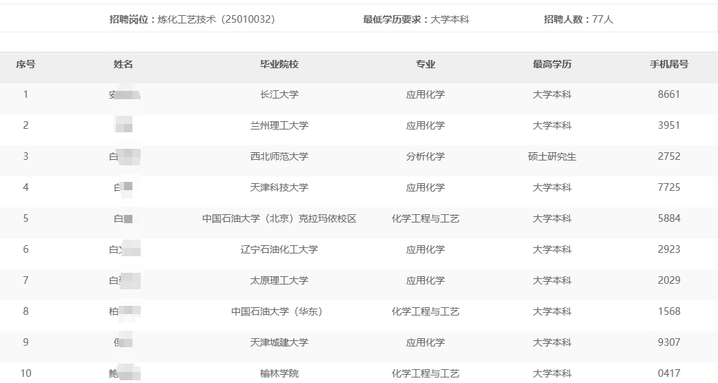 2024年兰州石化分公司秋季高校毕业生招聘入围通用能力考试名单