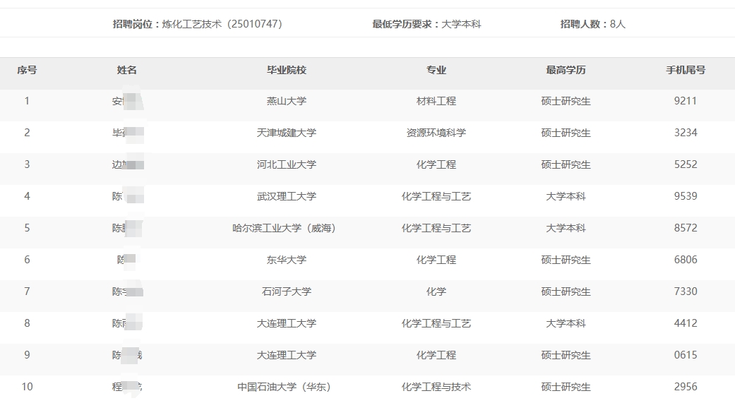 2024年华北石化分公司秋季高校毕业生招聘入围通用能力考试名单