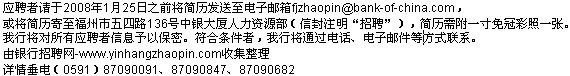 为满足业务发展需要,中国银行股份有限公司福建省分行诚聘以下优秀人才: