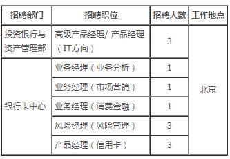 2017中国银行总行社会招聘公告(投资银行与资产管理部、银行卡中心)
