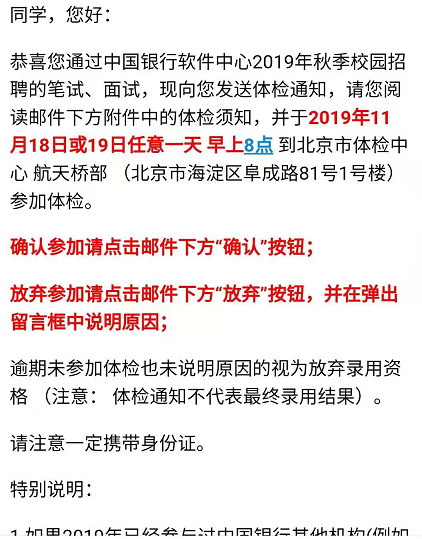 [广东]2020年中国银行深圳分行(提前批)校园体检通知