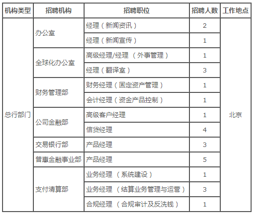 根据工作需要,中国银行总行相关部门现面向社会公开招聘,现就有关事宜公告如下: