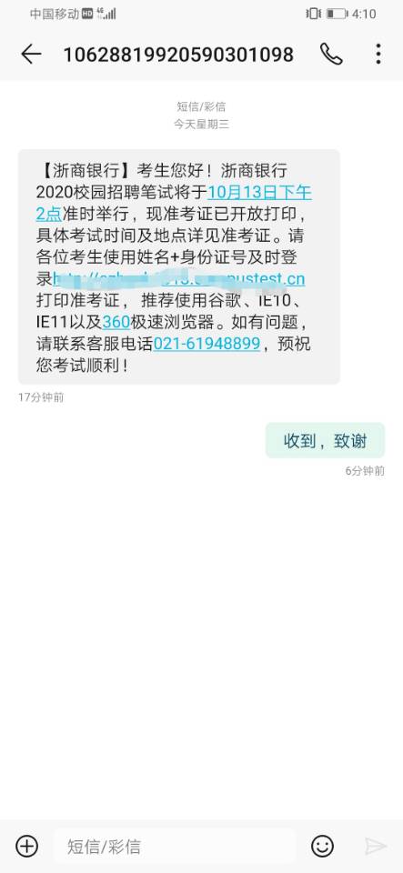 > [全国]2020浙商银行秋季校招招聘笔试时间及准考证打印通知