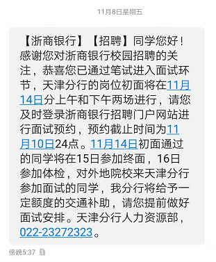 > [天津]2020浙商银行天津分行校园招聘面试通知