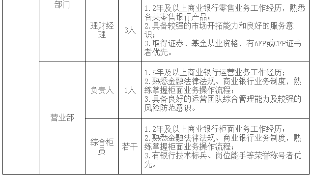 (四)原则上应聘支行负责人的年龄在43周岁及以下,其他人员的年龄在38周岁及以下,业绩突出的可适当放宽;