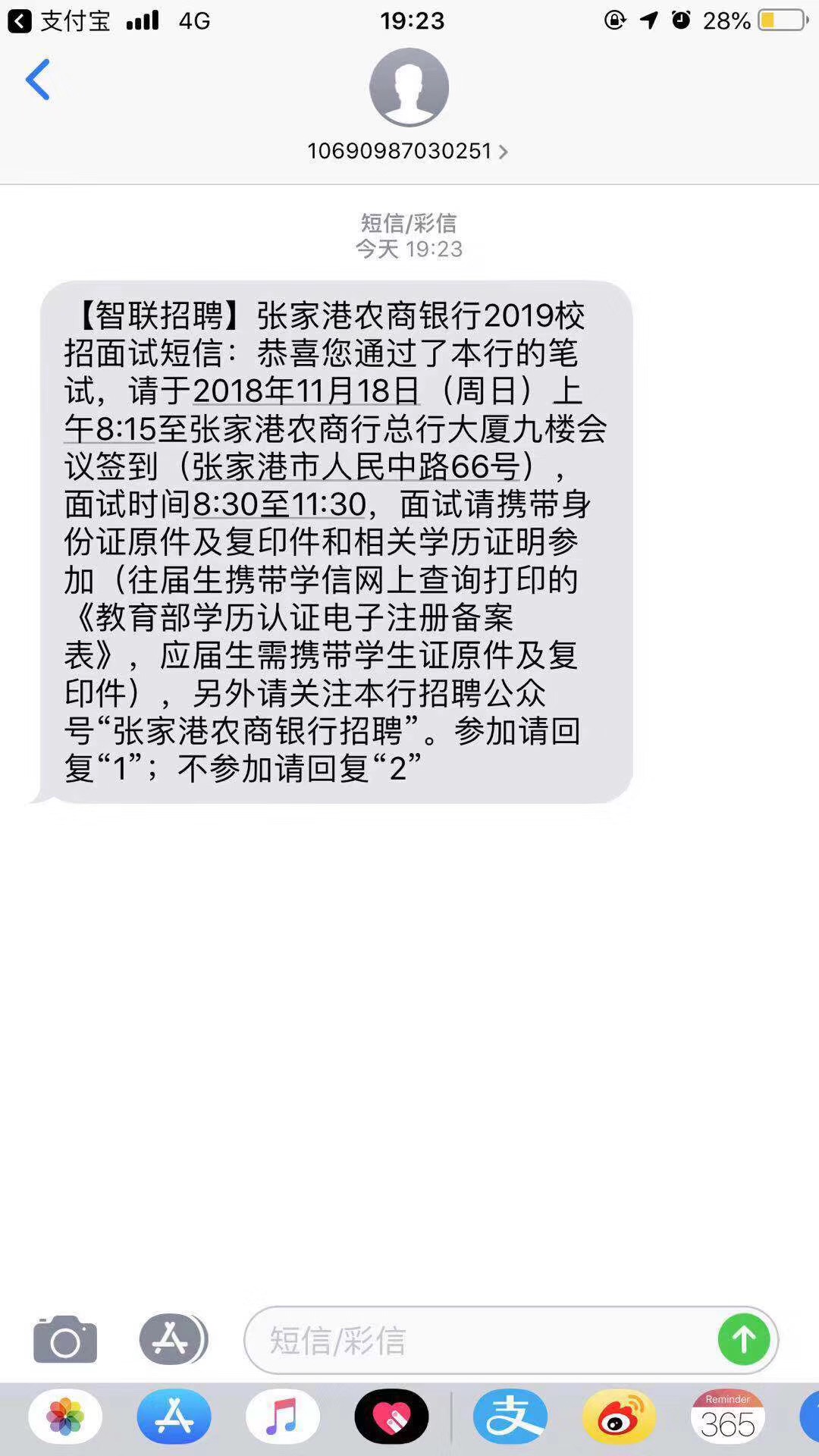 > [江苏]2019年张家港农商银行校园招聘面试通知