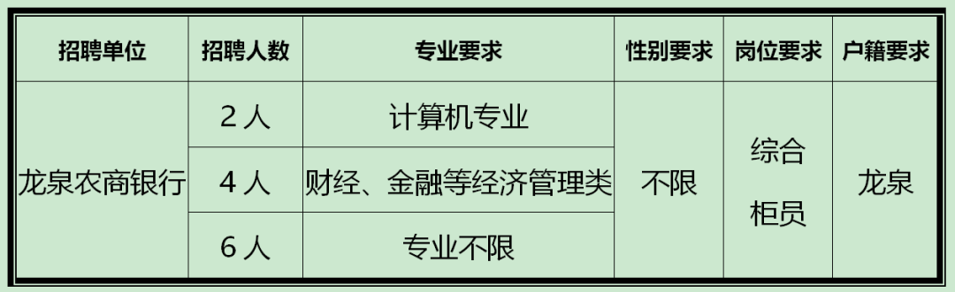 2020年龙泉农商银行春季招聘公告