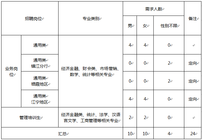 2.非定向招聘的岗位,根据需要由总行统一分配于南京市(不含