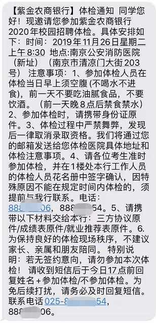 > [江苏]2020江苏紫金农商银行校园招聘体检通知公告