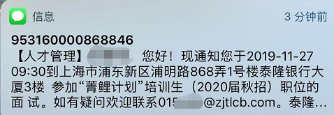 > [上海]2020浙江泰隆商业银行秋季校园招聘面试通知