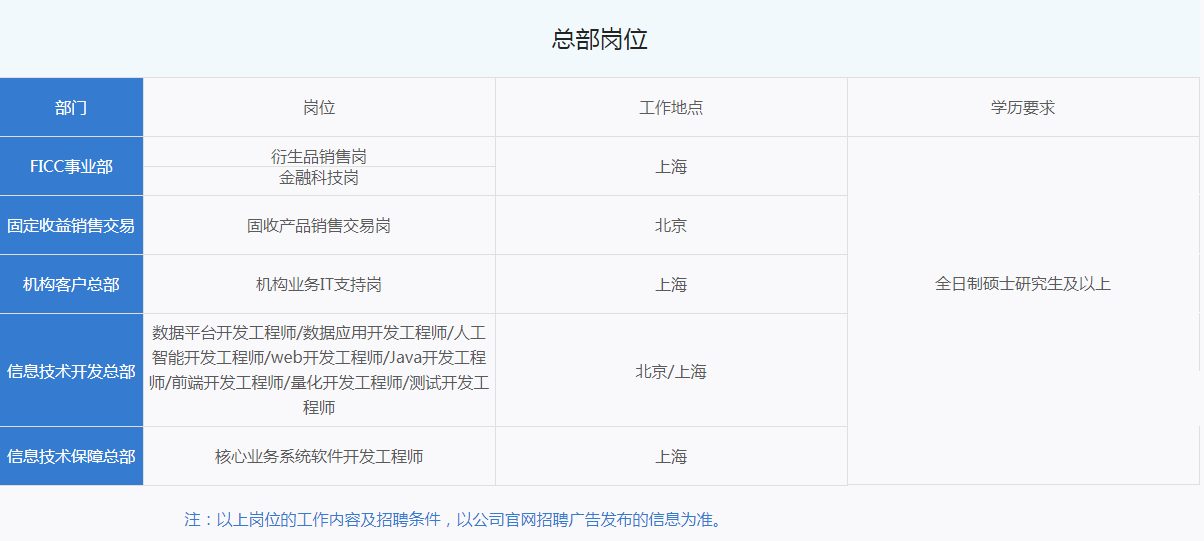 总部与分支机构岗位只能选择一个,请谨慎选择你钟爱的职位并赶紧申请吧!网申完成后将由系统自动发出测评邀请,请认真、及时完成测评。