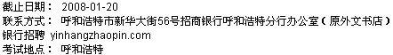 发布时间:2008-01-09 截至日期:已过期 来源:招商银行招聘 查看: 次
