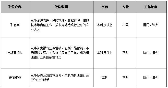 招商银行厦门分行欢迎有志投身银行业工作或对金融业有兴趣的、符合条件的莘莘学子踊跃报名。