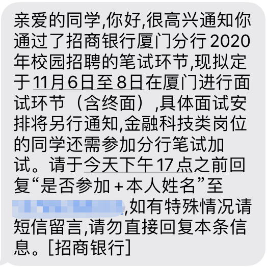 [浙江]2020招商银行杭州分行校园招聘面试通知