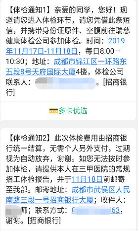 > [四川]2020年招商银行成都分行校园招聘体检通知