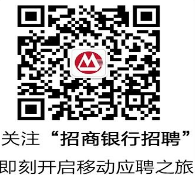 手机银行APP:扫描下方二维码,下载招商银行手机银行APP,进入招聘小程序,申请感兴趣的职位,在线投递简历!