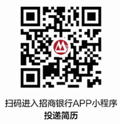 下载“招商银行APP”,打开左上角“扫一扫”功能,扫描下方二维码,点击“校园招聘”,选择北京分行发布的职位投递简历。