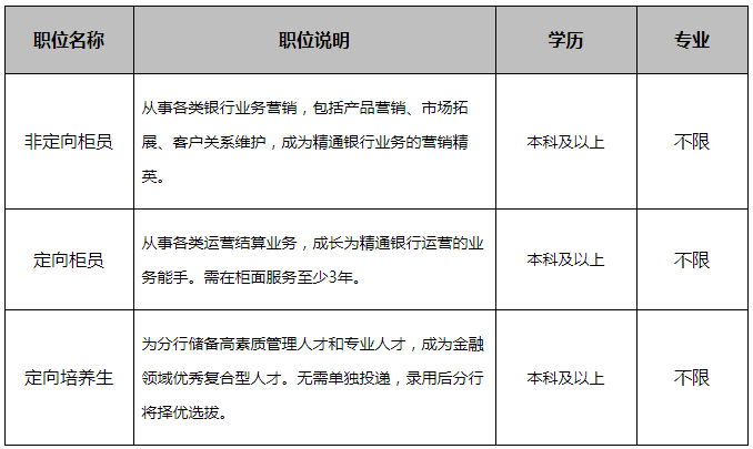 银行招聘网(www.yinhangzhaopin.com)温馨提示:凡告知“加qq联系、无需任何条件、工作地点不限”,收取服装费、押金、报名费等各种费用的信息均有欺诈嫌疑,请保持警惕。
