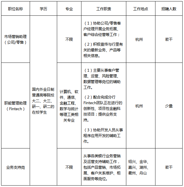实习生招聘”,选择杭州分行及下辖分行招聘职位并投递简历。