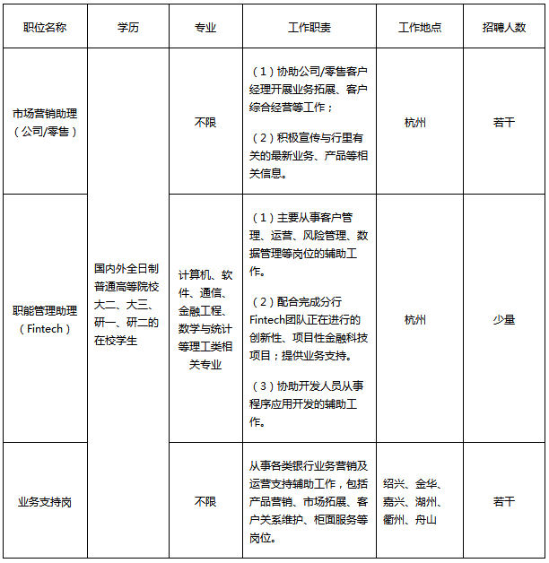 实习生招聘”,选择杭州分行及下辖分行招聘职位并投递简历。
