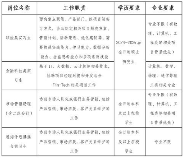 内部推荐:请招商银行员工通过“招商银行招聘”微信公众平台,点击“招了”-“YOU伯乐-校招内推”进行相应岗位内部推荐;