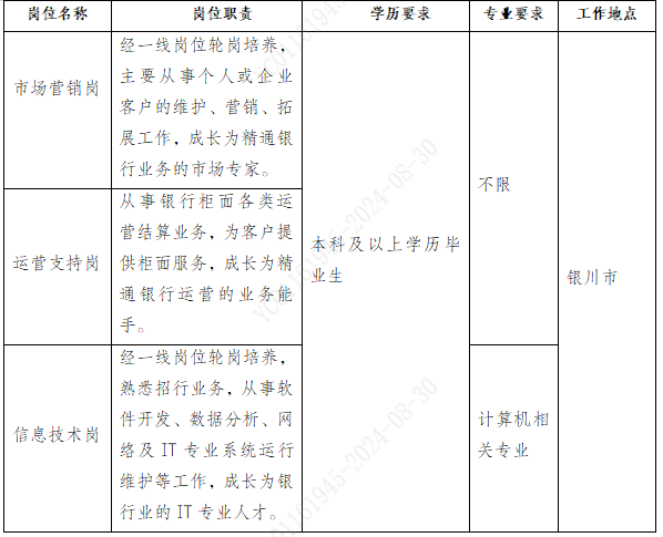 (三)应聘仅可通过招商银行官方招聘渠道进行网申。招商银行银川分行招聘不收取任何费用!